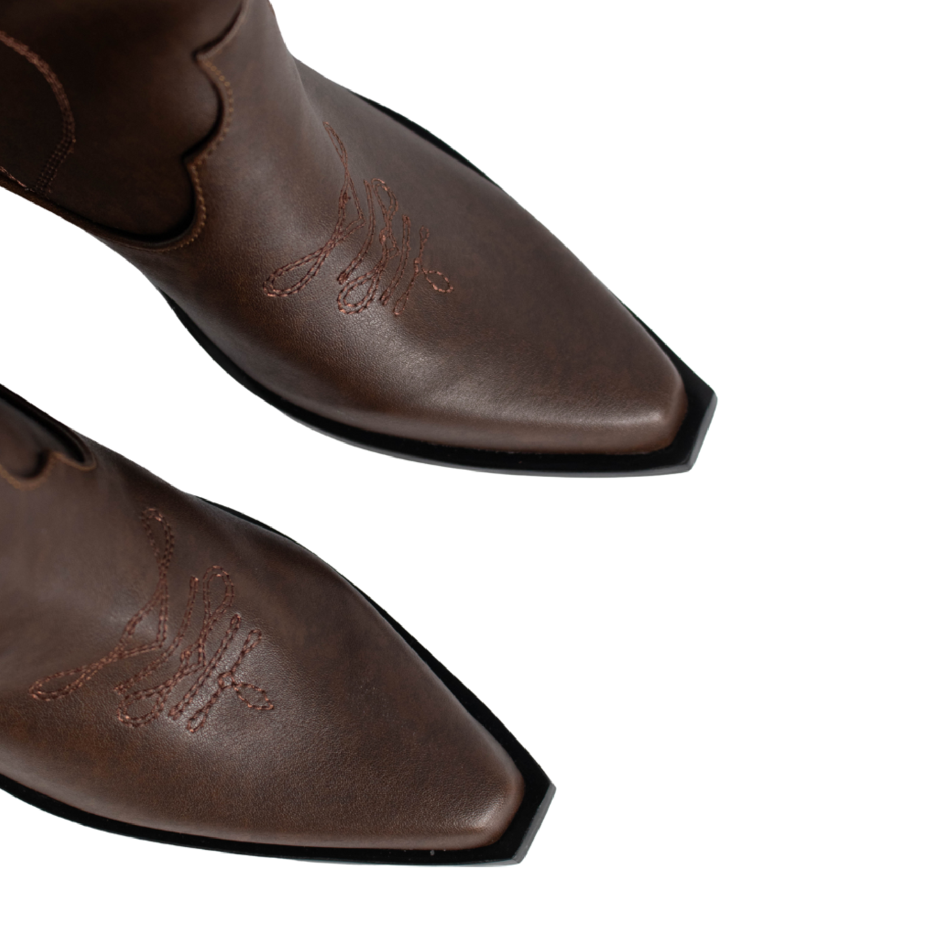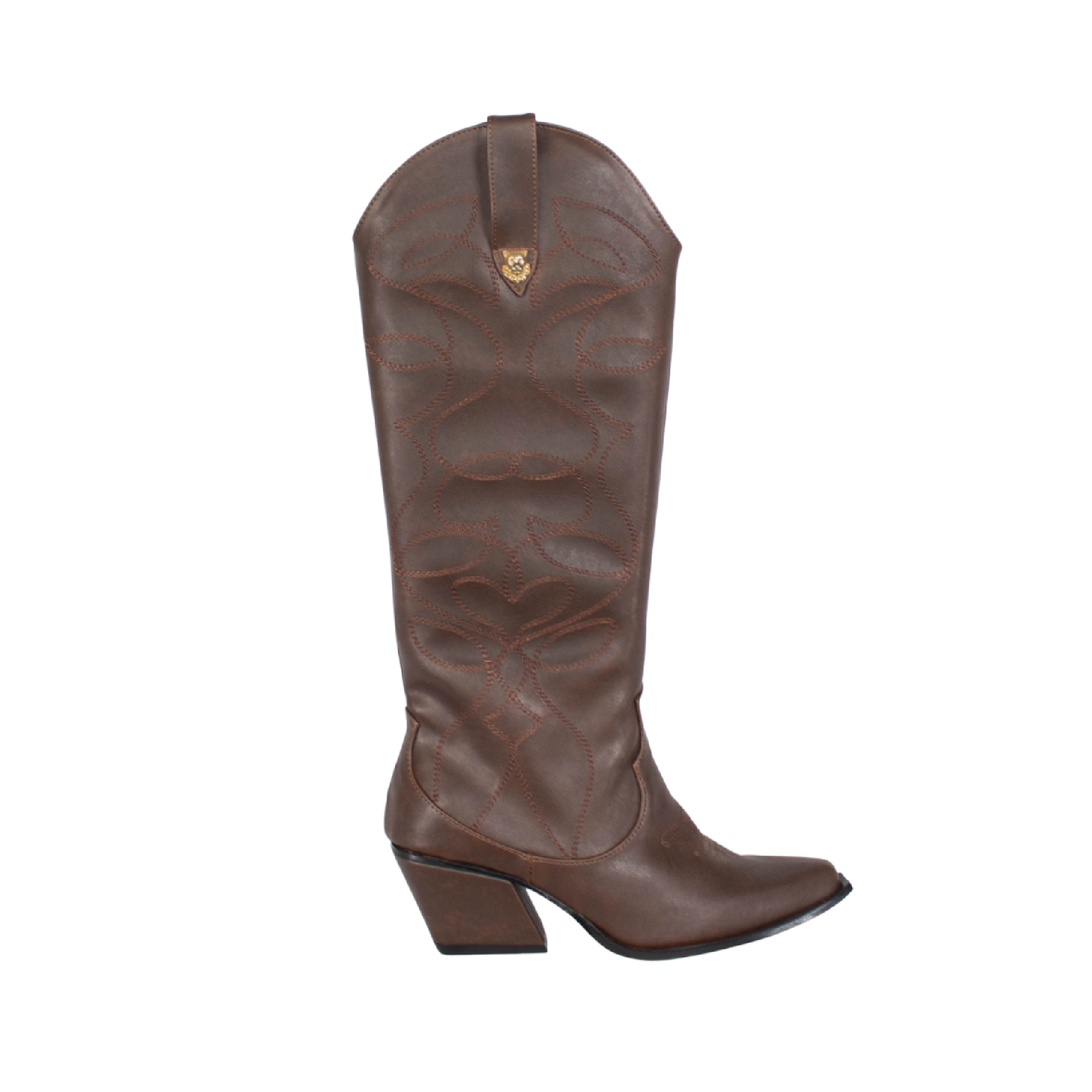 Botas estilo Cowboy, bordadas con un diseño propio de la marca y tacón medio muy cómodo (6.5 cm).